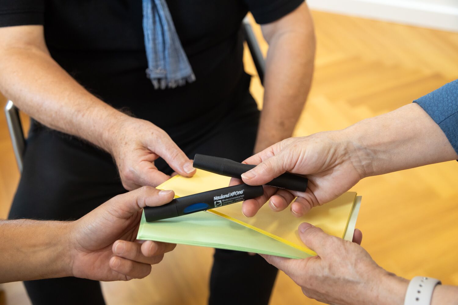 - Emotionale Deeskalation durch das "Sag's mir"-Prinzip: Hierbei ermutige ich die Parteien, ihre Emotionen und Gedanken direkt an mich zu richten, wodurch eine emotionale Eskalation zwischen den Konfliktparteien vermieden wird.